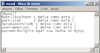 Aproveite que está trabalhando na pasta Vista4Life e entre na subpasta Vista4life_source\bin\Debug\bin. Abra o documento "mysql.ini" e aonde está escrito "password" troque pela senha que você escolheu nos passos anteriores. Salve e feche o documento.